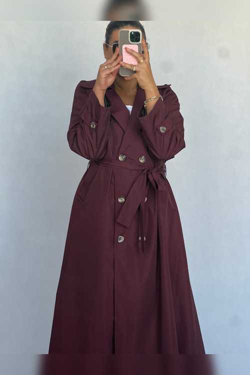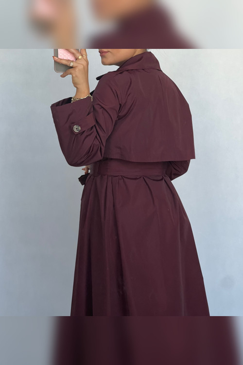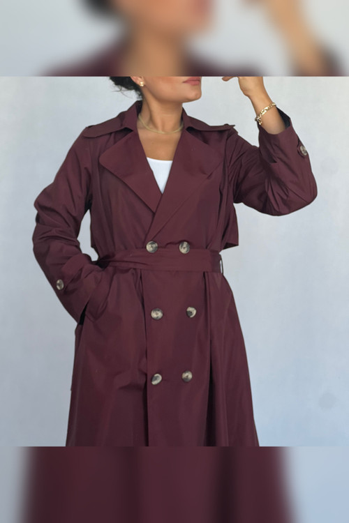 اگر به دنبال یک ترنچ کت بلند و شیک هستید که هم در روزهای بارانی استایلی خاص به شما بدهد و هم در روزهای معمولی بهعنوان لباس لایهای عالی عمل کند، این ترنچ کت زرشکی بلند انتخابی بسیار مناسب است.